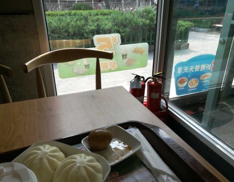 五元早餐 小杯豆浆加蒸饺 味道不错哦 服务员态度非常好 我带了杯子 帮我加满了热水 。店内有廁所,嗯,很好。