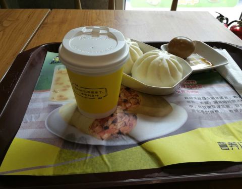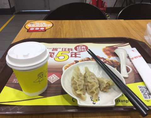 - 五元早餐 小杯豆浆加蒸饺 味道不错哦 服务员态度非常好 我带了杯子 帮我加满了热水