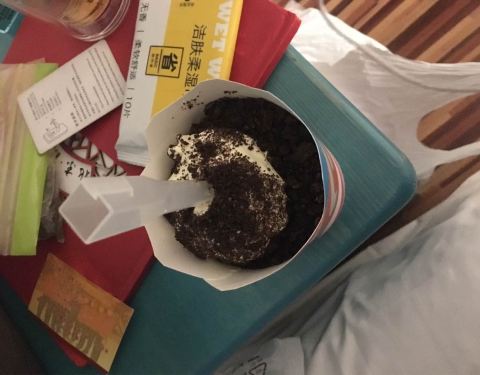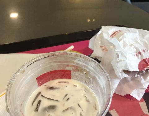 冰咖上面的冰淇淋好少喔……不过怎么会大早上搭配冰制品呢?这样对健康不利吧?