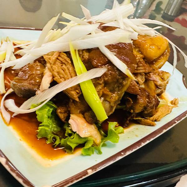 来鼎香润必点招牌肘子,脱骨后的肘子少去了剥骨的不方便,热气腾腾非常鲜嫩,改变了我对肘子的油腻刻板印象,再拿饼🫓一卷更是味道极佳;宫保鸡腿肉肉也不错,偏甜口,份量充足;鲮鱼油麦菜🥬感觉一般,味道比较重,没有融合的感觉;带鱼是朋友点的,我一口没吃,因为懒~~