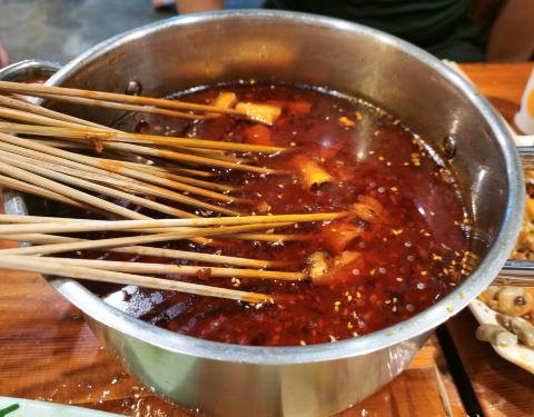 店里环境小资,在路边,门脸不大,但是进去真的别有洞天! 又烤又涮,特别棒! 先说环境,如图,感觉有味道,很轻松!很有特色,因为挨着后海和南锣鼓巷,文化气息吗! 说吃,那天看见老板,朋友是常客,说老板就是爱琢磨吃,仅仅烤串就有好几种,不是一般的分类,串串的签字都不一样,因为肉不一样,为了让肉的味道更好,有的必须桃木串! 特别棒! 凉菜花生我记得,爽口,好吃!小技术,见点滴吗! 串串香,很赞! 小心上火! 和朋友聚会,真的好舒服! 吃饭一会儿就满了,估计最好提前预约![色]