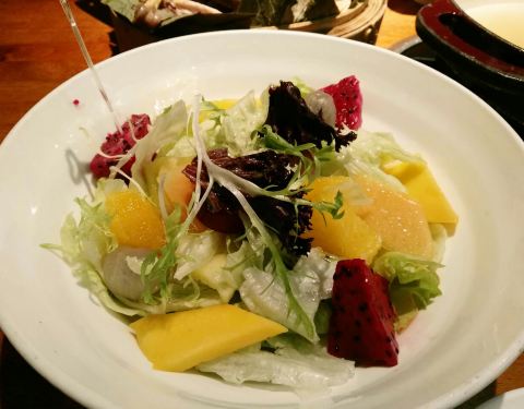 - 高原酵果蔬沙拉:水果非常多,火龙果、橙子、葡萄、柚子、石榴、瓜等,很清口