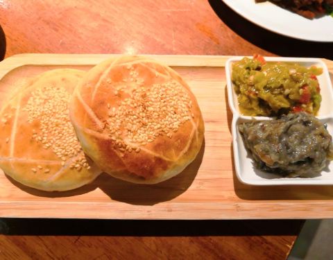 客家黑鸡汤:乌鸡一部分吃,一部分放到汤里煮,鸡肉很嫩,蘸小料吃,汤鲜味美。 大巴山老腊肉炒笋:腊肉肥而不腻,非常香,适合下饭。 转炉火烧夹双拼酱:火烧是芝麻的,双拼酱是茄子、辣椒两种,辣椒不是很辣,...客家黑鸡汤:乌鸡一部分吃,一部分放到汤里煮,鸡肉很嫩,蘸小料吃,汤鲜味美。 大巴山老腊肉炒笋:腊肉肥而不腻,非常香,适合下饭。 转炉火烧夹双拼酱:火烧是芝麻的,双拼酱是茄子、辣椒两种,辣椒不是很辣,夹着吃很香。火烧微热,刚出锅应该更好吃。 高原酵果蔬沙拉:水果非常多,火龙果、橙子、葡萄、柚子、石榴、瓜等,很清口。 客家擂茶:感觉放了抹茶,还有黑白芝麻,颜色很好看。味道有点像油炒面,香甜可口,搭配可可、紫薯、芝麻、抹茶四种大福。 炝拌牛心菜:油不大,能尝出菜叶子的清甜味,很解腻。