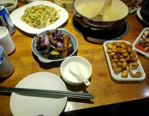 菜品种类并不多,主打鸡汤,点了火烧,豆腐,酵素大拌菜,味道都还不错。鸡汤和鸡肉是分开盛放的,放到桌上的电磁炉上加热,冬天喝喝很不错。