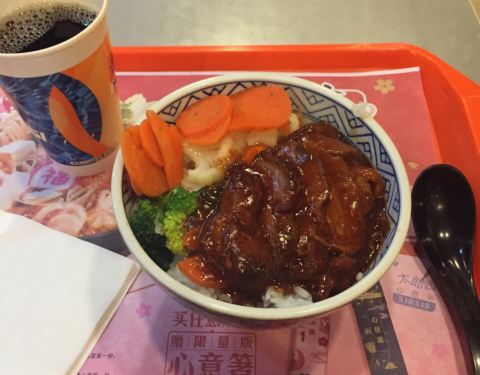 方便快捷,而且网上可以团购,或者关注店内优惠券,一般中午十元就能一份盖浇饭加一杯饮料,有时还有小食。作为工作餐,妥妥的。