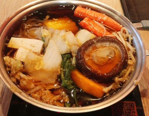 芝士竹轮小火锅很不错,蔬菜很多、种类全,色艳味鲜,汤底是关东煮的汤,不用蘸料也挺好吃,也可以自己调配小料,麻酱、海鮮酱油、辣椒、葱花、芝麻等,任选搭配。环境比较干净整洁、小巧紧凑,适合单人或两三个人小吃。下次准备尝尝蕃茄鱼锅。