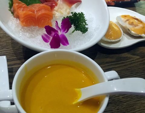 每一种肉类都挺新鲜的,胡椒海盐粉能很好得配合烧烤的多汁嫩肉。鱼生感觉挺新鲜,种类也不少,味道不错