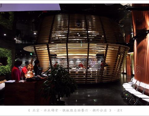 水木锦堂铁板烧自助餐厅(朝外店)的装修高级大气很舒适,灯光美感十足,布局很合理。每一种肉类都挺新鲜的,胡椒海盐粉能很好得配合烧烤的多汁嫩肉。鹅肝简直太美味不能自拔,口感细腻鲜香,鹅肝很嫩啊,入口即化...水木锦堂铁板烧自助餐厅(朝外店)的装修高级大气很舒适,灯光美感十足,布局很合理。每一种肉类都挺新鲜的,胡椒海盐粉能很好得配合烧烤的多汁嫩肉。鹅肝简直太美味不能自拔,口感细腻鲜香,鹅肝很嫩啊,入口即化。北极贝很鲜美,三文鱼也是比较不错的了,虾也比较新鲜,扇贝两种做法都很好吃。鱼生感觉挺新鲜,种类也不少,味道不错。北极贝生蚝扇贝都处理的很干净,美中不足是软儒鲜甜的甜虾竟然不给剥壳上,吃起来超不方便的清酒不错,酒味很纯。服务员小哥和热情,烤制食物很认真,态度都很积极的。