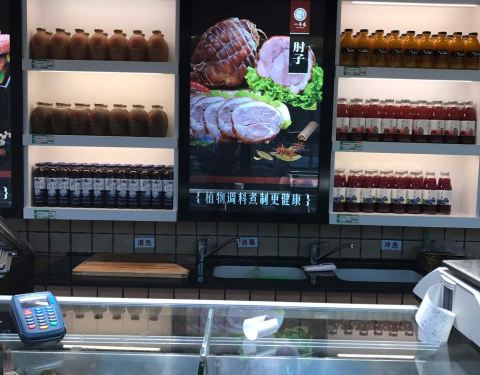 十字路口西南角,两个美女服务态度好,每一样熟食味道都很好,最喜欢吃松花火腿,香菇鸡肉卷,每次味道美美的~