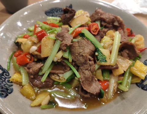 又来啦!一直还挺喜欢吃湖南菜的!这家没少去。味道还不错!就是小炒牛肉卖相不咋地!例汤的料给得还挺足的!整体还不错,就是菜品偏少!