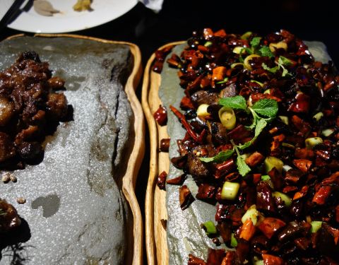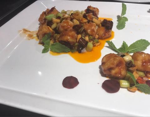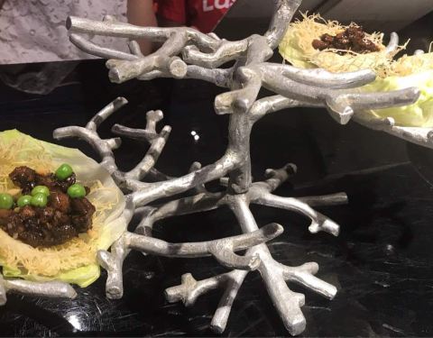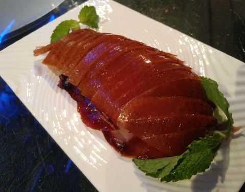 - 菜品很精美也很有文化,有一道菜服务员还吟诗一首。餐厅的布置也很漂亮。价格也杠杠的。可以看到现烤烤鸭