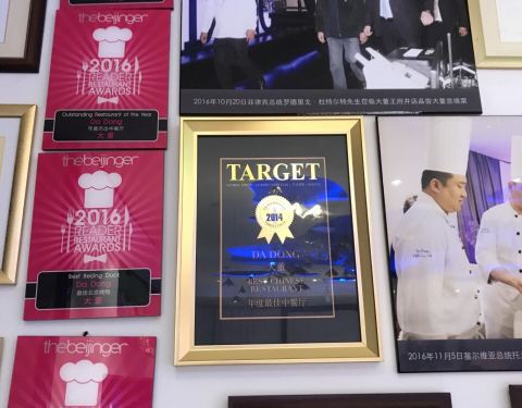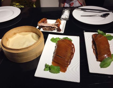 在热闹的王府井大街上,餐厅高大上,有不同的区域。可以看到现烤烤鸭。菜品很精美也很有文化,有一道菜服务员还吟诗一首。餐厅的布置也很漂亮。价格也杠杠的。