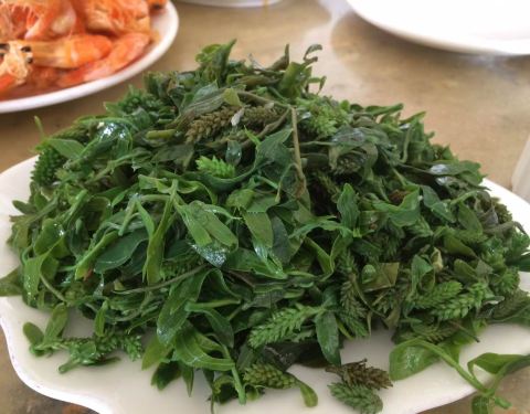 第一次吃柳树芽,很新鲜,铁板浇汁鲈鱼味道很棒!