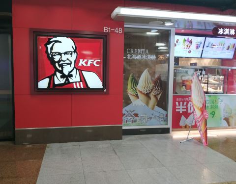 这家肯德基店位于西直门凯德茂的地下一层,旁边是地铁出入口。门脸不大,而且位置较为偏僻,一般不注意找不到。里面和其他肯德基一样。该有的都有。