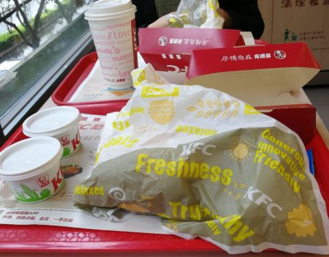 朋友三人晚上去梅兰芳大剧院看演出,晚饭准备就在周围解决了。好久没有吃麦当劳肯德基一类的快餐了,因为赶时间,上网一查,在附近就有一家肯德基(车公庄店)。三人匆匆赶过去,一人点了老北京鸡肉卷套餐,二人点...