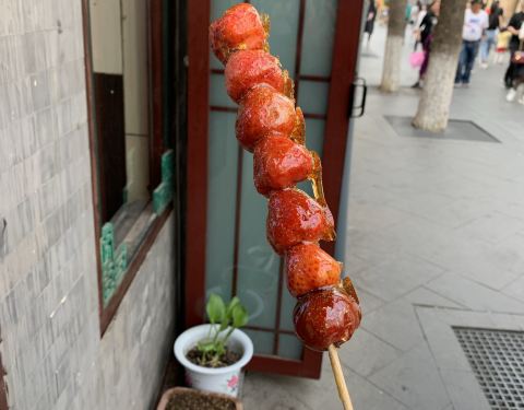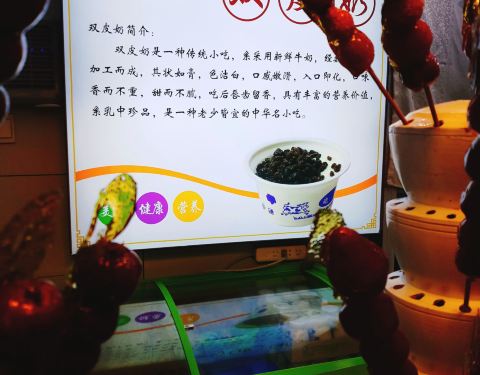 在南锣鼓巷上的一家店,我们是奔着糖葫芦而去,最后买了一份草莓和山楂一起的糖葫芦,味道挺不错的,20元一根价格一般,还买了一份桂花双皮奶,甜甜的味道挺不错,只是双皮奶的味道挺一般的,全靠上面的桂花味来...
