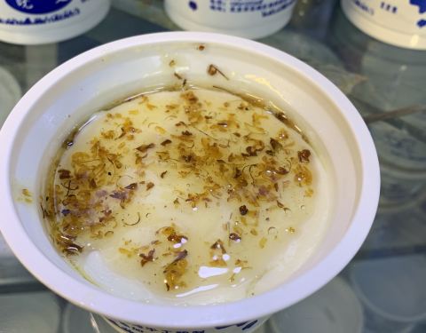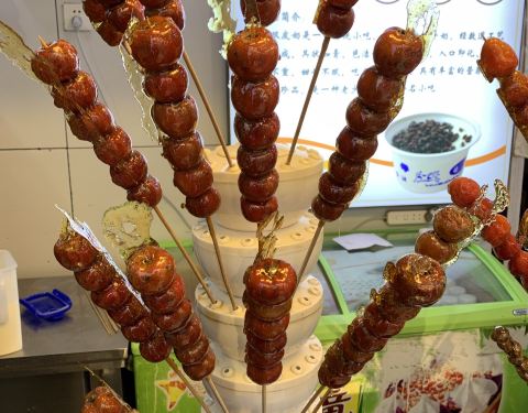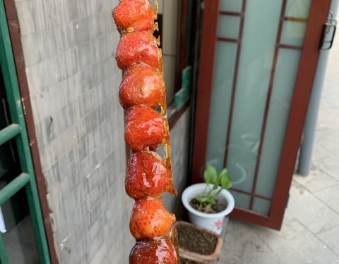在南锣鼓巷上的一家店,我们是奔着糖葫芦而去,最后买了一份草莓和山楂一起的糖葫芦,味道挺不错的,20元一根价格一般,还买了一份桂花双皮奶,甜甜的味道挺不错,只是双皮奶的味道挺一般的,全靠上面的桂花味来提升口感