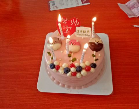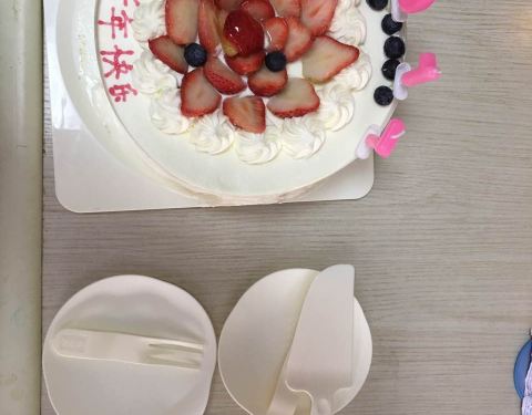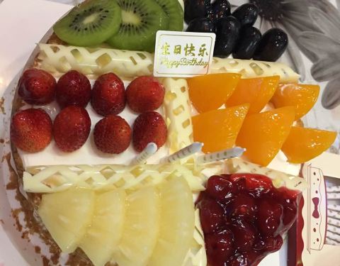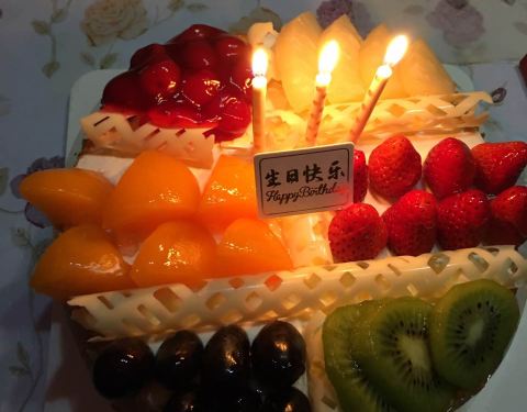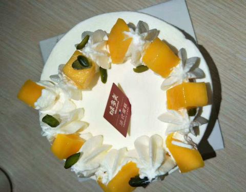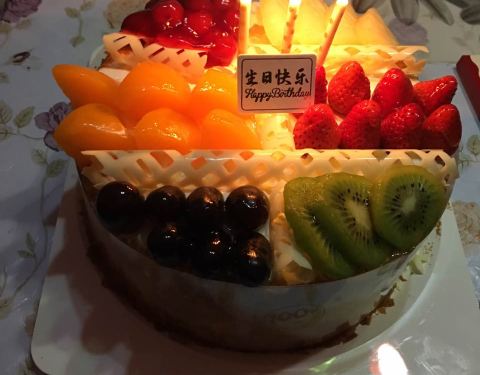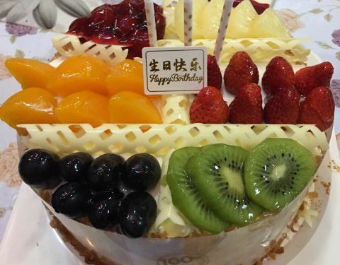 买的生日蛋糕,非常好吃,水果很多,是100%天然奶油的,现在过生日都买味多美的蛋糕了。