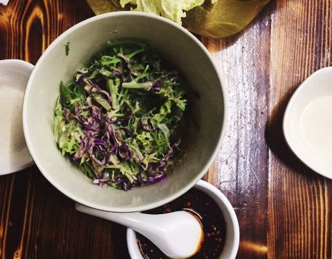 超级火热的 葫芦娃火锅,终于造访 吃了个能够接受的不那么辣火锅 口味偏成都风味,没有重庆麻辣得那么热烈。九宫格于是又不够用了,千层肚、鸭血、水上漂嫩牛肉、鸭肠,竹笋,酥肉现炸最好吃,高山功夫土豆片开出了花,手打青虾滑… 再来份火锅面,吃一份麻团,小料各种眼花缭乱,吃得比成都本地还要热闹。
