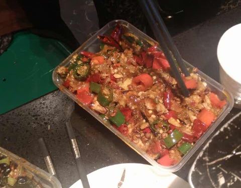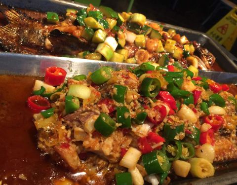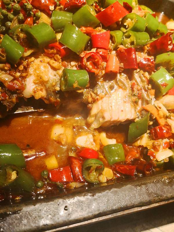 四个大人点了两条鱼,共5.2斤,还不错。双椒味道很有味,下饭。