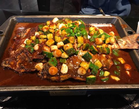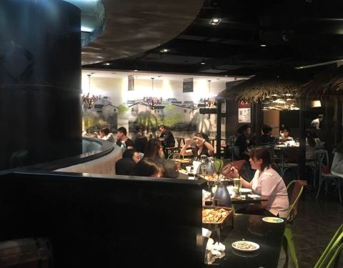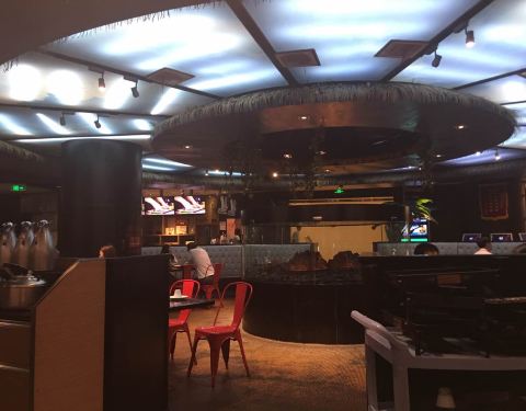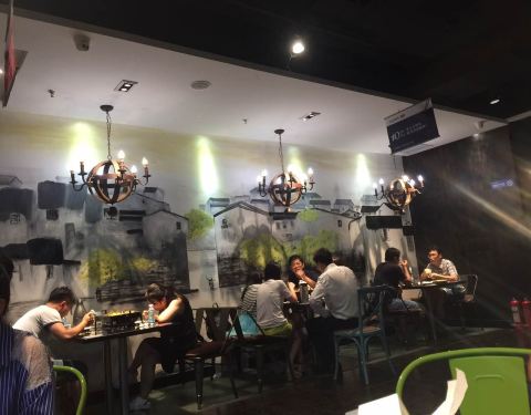 江边城外烤全鱼是在北京比较出名的一家连锁店,口碑很好。这家店开在华彩中心的四层,地理位置非常方便,在广顺北大街,地铁东湖渠站出口出来就是。装修挺不错的。生意特别火爆,还需要排队好久。点的鱼香味的烤鱼。一开始吃还是非常好吃的,吃到后面就越来越咸了。不仅鱼特别咸,加到里面的菜也很咸。服务态度是非常好的。