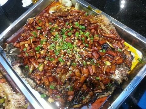 - 推荐凉菜果仁菠菜,很棒!一般一条鱼在2.5-3.8斤左右,有很多种口味的。可以自己带饮料去