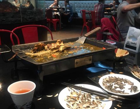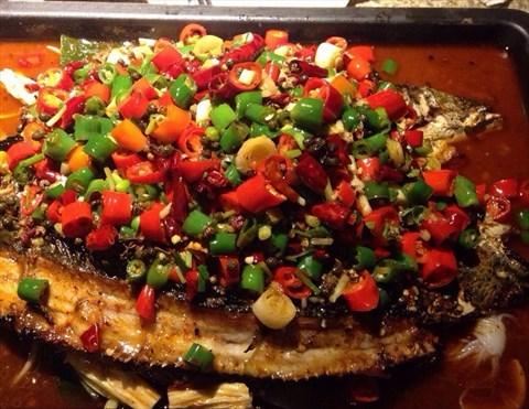 江边城外烤全鱼,就认他家的烤鱼。现烤的鱼,需要等30到40分钟,时间有点长,边嗑着免费的瓜子边等吧。双椒味儿的,挺有味儿的,鱼肉鲜美,鱼肉很嫩,墙裂推荐。
