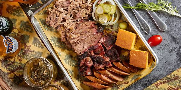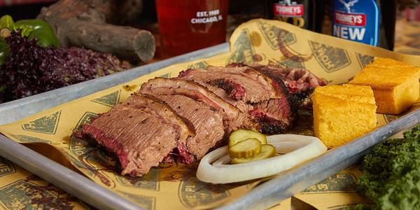很大的空间,装修成老工厂的样子,非常特别。烤猪肉和烤牛肉做的都很好嚼,口感好,桌上多种酱汁可选。卷心菜非常好,浇汁味道超好。大屏幕直播美国橄榄球赛,客人看得很高兴。
