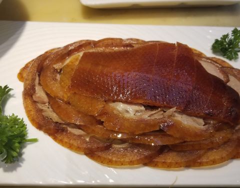 - 鸭皮酥脆可口,鸭肉细嫩多汁,蘸上酱汁香醇浓厚的香味让人流连忘返,油而不腻的口味丝丝入味嚼起来唇齿生香