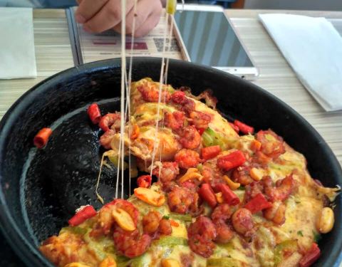 首先服务特别周到、细致!很赢得消费者的心新品麻辣小龙虾披萨味道也值得品鉴!嗨杯好大一份儿,两个人足矣!沙拉量不太多啊