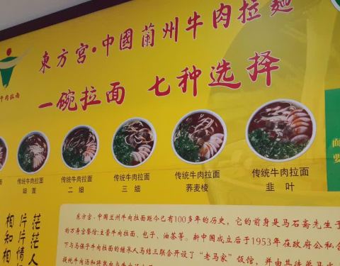 据说比较地道的牛肉面,招牌左上角据说是兰州牛肉面协会认证,后厨干净利落,一青二白三红四绿五黄齐...