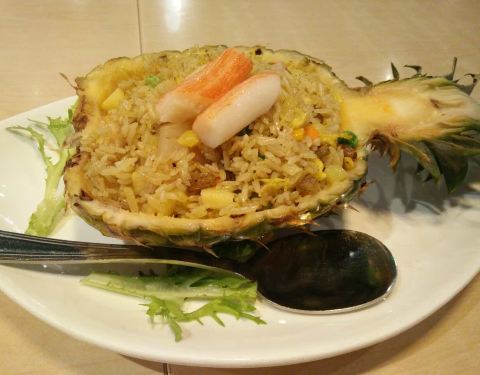 虾仁云吞很好吃,很多虾仁菠萝饭味道有点淡,肠粉一般般!