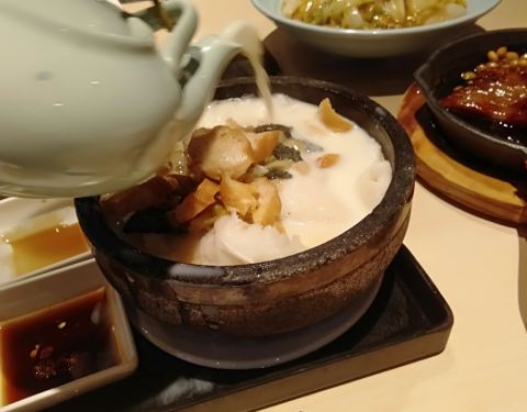 昨天某老板的朋友找我有事,下午约在避风塘见面了,我们约的时间离避风塘的下午茶时间很近的,那就叫了下午茶了,我选的粥套餐,这个粥有点差劲了,白粥里面啥也没有,记得以前有鱼片粥啥的,这次好像就是白粥了,这下午茶略坑了,还不如选云吞面那个了。