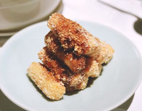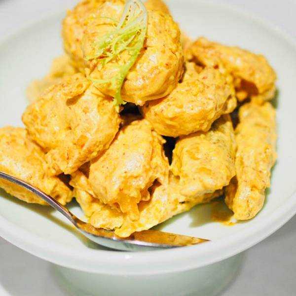 一半是🍤一半是秋葵,荤素搭配倒也相得益彰!外面裹了一层咸蛋黄,炸的火候很棒,应该是吸过油了,吃起来完全不腻,鲜香脆口的咸蛋黄衣犹如吃天妇罗那般,薄厚度刚刚好,虾仁也够大只,🈵️足!再来点秋葵,带点粘连感很特别了!