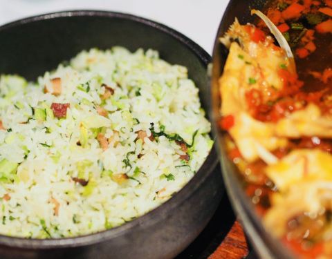 最近连绵☔️,就想着吃点重口味来调剂下心情!幸亏朋友到得早,否则也是门口等位的节奏!若是不下雨户外的坐位似乎更惬意随性!室内基本满座,也是,每次路过我都会一眼 宾客满棚,开了也快20年了吧,生意依旧肯定是有道理的!室内空间安排得很紧凑,有若干镜面延展视觉上的空间感,有两个包房,人气是真的旺! 饮料:薏米水、百香果冰茶等果味系列不错喝,前者带点酸,祛湿效果一级!后者非常爽口解辣! 冷菜以开胃为主,椒麻手撕鸡的鲜嫩、蒜泥白肉的口感醇厚不腻、擂豆角拌烤麸的鲜香都留下不错的印象,挺显精致! 几道必点热菜吃得大呼过瘾! 茶油剁椒大鱼头 水库大鱼头真的是量大,2000g左右的分量可以多叫几个朋友一起分享!上面红红的️酱盖满了一层,鱼头蒸的时间很精准,入味且鲜嫩都体现出来了!就算不太能吃辣的我也忍不住多吃了几块,最后还加了份手擀宽面,吸附了酱汁真的是好吃得飞起! 孜然手抓排骨 的肋骨选的部位可以,两块起售,每一块都有着匀称的长度和宽度,戴上手套大快朵颐!肋骨外层撒了一把孜然起到画龙点睛的效果,酥脆香嫩还有汁水! 咸蛋黄炒大虾 一半是一半是秋葵,荤素搭配倒也相得益彰!外面裹了一层咸蛋黄,炸的火候很棒,应该是吸过油了,吃起来完全不腻,鲜香脆口的咸蛋黄衣犹如吃天妇罗那般,薄厚度刚刚好,虾仁也够大只,️足!再来点秋葵,带点粘连感很特别了! 竹筒牛蛙腿 一个竹筒里容纳了四只牛蛙,那就是有八条牛蛙腿,量还真是不少!蛙腿各个像练过gym,搭配特制的剁椒酱,鲜嫩度又⬆️几个level,底下还铺了几个软糯的芋奶,也蛮入味的! 臭豆腐肥肠煲 重口味系列,大肠洗的很干净,没啥膻味,很有嚼劲!臭豆腐和鸭血在一起滚煮、我更喜欢鸭血的鲜嫩,好好吃! 上汤米苋 家常的一道菜,记得小时候夏天吃得最多的就是红米苋,红色的汤汁跟搅拌下能吃更多[调皮]上汤的做法让米苋更软糯,加了碎皮蛋等,鲜味也 湘西酸萝卜扁尖炖老鸭 一看汤品的颜色就知道是一锅用心炖的好汤!酸萝卜的酸味都融入汤里,汤祛湿除燥,扁尖脆口,喝了两碗让我更开胃了[奸笑][笑哭] 所以我决定不点了再来一份红糖糍粑 满满10根,红糖➕糯米做的小吃虽然也是经过油炸罢特也是吃不出油腻感! 店还是老的好,口味在线,服务舒心,下次换个分店再试试[耶]