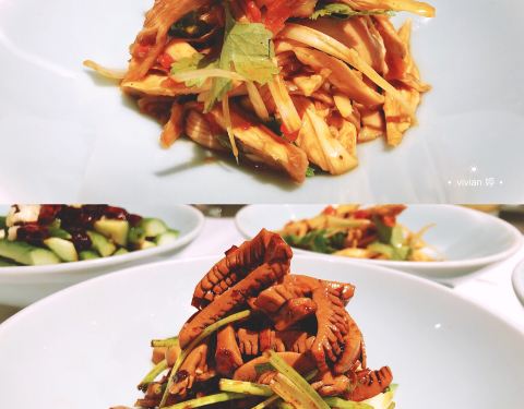 冷菜以开胃为主,椒麻手撕鸡的鲜嫩、蒜泥白肉的口感醇厚不腻、擂豆角拌烤麸的鲜香都留下不错的印象,挺显精致!