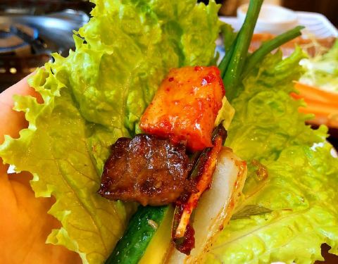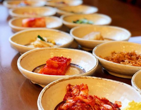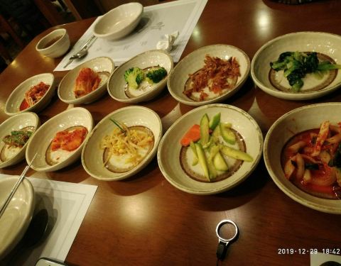...韩国人的口味,蛮正宗的,关键上菜前会送很多很多的开胃小菜,十几种啊,一会儿就把一半的桌子沾满了