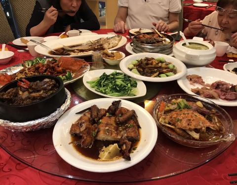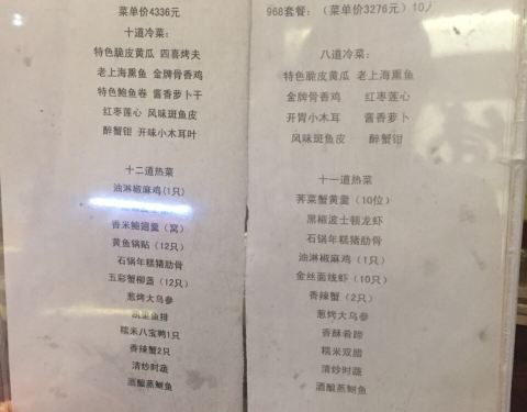 饭店在南京西路上,中华老字号,现在是吃长江刀鱼季节,价格不菲,其它都是以江鲜和淮扬菜为主,做工精细,典型的镇江和扬州特色,点心也是扬州包子,特别是灌汤包有名。