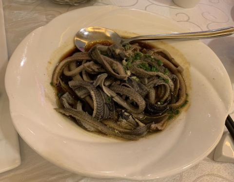 新镇江酒家,位于上海南京西路,是一家以淮扬菜为主打的老字号餐厅。此次去的时候,正好是刀鱼季,于是点了刀鱼面和刀鱼狮子头来尝试。鲜美好吃,不过刀鱼面冷了有点腥味,因此要趁热吃。价格偏贵,服务不错。