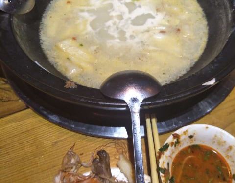 味道很棒,骨头很补,南瓜饼也很好吃,酒酿的味道也不错,就是量给得太足了,完全吃不掉,喜欢这种不是很辣的火锅,赞一个!推荐大家都去的哦………………!!!