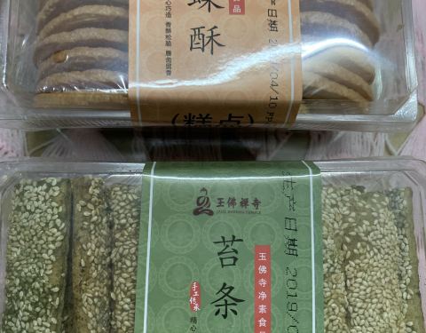 在玉佛寺没装修前,有一阵我曾经常去那里吃素面。那时候的素斋馆门是开在江宁路上的,吃面的人并不用买寺庙门票就可以直接进去吃面。不过这一晃眼大概也有十年了。这次过去完全是不认识了。新造的庙里有觉群楼,...在玉佛寺没装修前,有一阵我曾经常去那里吃素面。那时候的素斋馆门是开在江宁路上的,吃面的人并不用买寺庙门票就可以直接进去吃面。不过这一晃眼大概也有十年了。这次过去完全是不认识了。新造的庙里有觉群楼,看着非常高大上,那个是做宾馆餐饮的,好像是庙里专门用来招待客人的,但不是你我之类的普通香客。那里的五观堂门上白纸黑字写的明白,员工内部餐厅。原本玉佛寺素斋沿街的铺面被移到最里面,这还不算,那栋楼简直就像民工工棚,见图一,跟原来古雅的建筑简直就是一个天上一个地下。 不过我是来吃素斋的,不是来吃装修的,对我来说,只要东西好吃,装修可以忽略不计。以前最好吃的香菇肉圆面现在没了,就点了个罗汉面,跟我记忆中的玉佛寺素面差距不是一点点。但我还买了其他很多素食,根据口感从好到差,这些素食的名次依次为烤麸,素鸭,蝴蝶酥,菜包,苔条脆饼,罗汉面。表扬一下,他们家的原材料应该不错,所有的东西吃完都不口干。 面其实跟现在外面比还算可以,问题是在我拿面前出现的那幕实在叫人吃不下去。我前面一个男的拿好面,过来拿餐巾纸,他把仅剩的几张都拿完了,就剩个空塑料袋了。这时一阵风吹过,把那个塑料袋就吹到里面那一大锅的辣酱浇头上去了。然后,我就在想这群阿姨会怎么办。说时迟那时快,还没等我做完白日梦呢,阿姨想都没想一个箭步上前,手疾眼快,驾轻就熟地就把那个塑料袋轻轻一捏像拎小鸡一样地一把就提起来了,一分钟不到精准打捞上岸。虽然我点的不是辣酱浇头,但难保同样的事没发生在其他浇头或食物上。好吧,我是来吃素的,就当佛说一切都是幻想,刚才什么也没发生吧。至少比起世间你我看不到的龌龊事来说那个塑料袋真的不算什么脏。 回到素食本身,这堆东西里最好吃的是烤麸,这个味道还是跟以前一样的,就是没了金针菜。素鸭也算好吃的,除了比较咸之外,但罗汉面基本是淡的,搭着一起吃正好。菜包味道也不错,就是芯子好像少了点。蝴蝶酥我妈喜欢,这家的不太甜,而且没啥添加剂。苔条脆饼味道是甜大于咸,但还能接受。虽然点评有团购,但我去的日子是十五,香期,手机支付包括团购都不行,所有的东西统统都要付现金。大家带好大把人民币去。那里的东西大致上都是二十五一样。哦,对了,素斋馆出门去厕所的路上也有小卖部,也是在庙里的,也卖素鸭菜包之类的,那里可以支付宝。好奇怪的地方。貌似庙里财务是这么想的,人多的地方只收现金,人少的地方可以收点电子支付。