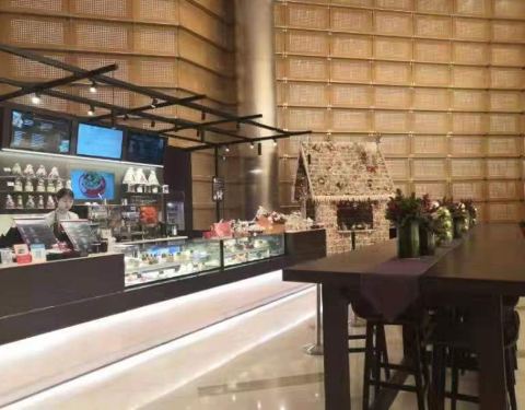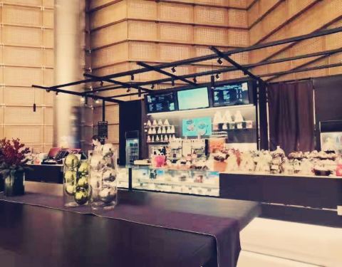 金茂君悦的精饼屋搬到了大厅这里来了。地方看上去宽敞多了。可以在大厅里谈事之类的,点上一杯咖啡。还是非常不错的。也非常方便呢。