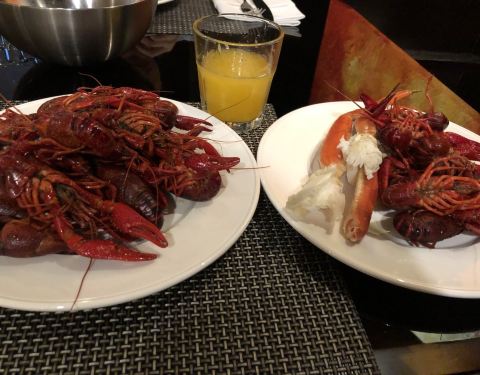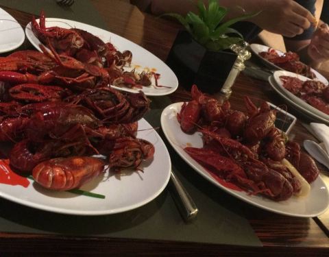 - 我们8个人来的,环境还是不错的,顾客没有很多,而且餐盘换的很勤快,美中不足的是小龙虾种类只有5种