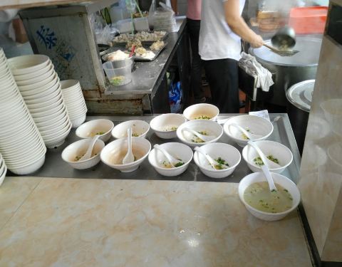 据说是普陀区最好吃的小笼包,真的皮质挺晶莹剔透的,点了小笼和小馄饨,上海人的常规早餐套路,汤汤...