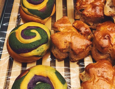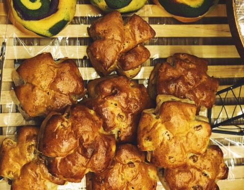 - 不断有新鲜出炉的面包。虽然奶味不重,但口感很好。 蓝莓味道很正,较好吃。 里面非常膨松,柔软