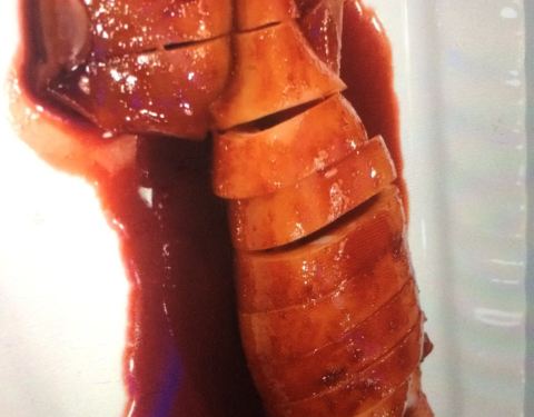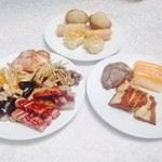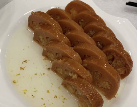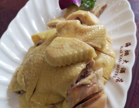 海烟大酒店中餐厅,烟草集团下的三星酒店。咸香鸡,皮滑肉嫩;目鱼大烤,酱料足,肉质紧实有嚼劲;糖藕,甜甜的汁水,藕很软,里面的糯米也糯。