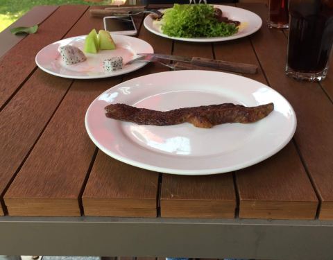 这家店总算是拔草了,每次路过它家玻璃房外总想进去吃一顿肉肉,这次正好某人请客吃饭当还人情,地方随我挑个么我就选了这里,吃下来给我的感觉就是幸好花的不是我的钱,否则后悔死... 环境没话说,很高档,整栋玻璃洋房,总共2层,外面有精心布置的露台,桌子之间的距离也很大,如此的用餐环境已经决定了它的价格不菲 自助餐区基本都是主食、色拉及小菜,吃了几个觉得味道都比较一般 烤肉吃了好几种,牛舌、牛肩、鸡心等等,鸡心最好吃,其他肉都太老 海鲜拼盘里面烤虾不错 三角肉是牛臀上的一块,需要另外付钱,398一份,坦白说另外花钱的就是好吃,跟送上来的差太多了 烤菠萝我觉得是他家最好吃的了,原来菠萝烤一下那么好吃 一顿饭人均400,性价比真心低到不行,感觉都吃的不值钱的东西,看来地段决定了价格,他家wifi是放着看的,没用的,有表演,只不过没认真听,人气一般般吧.....