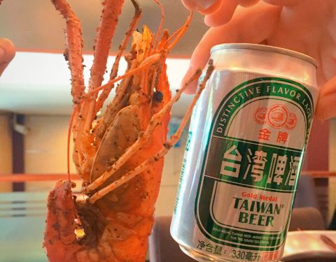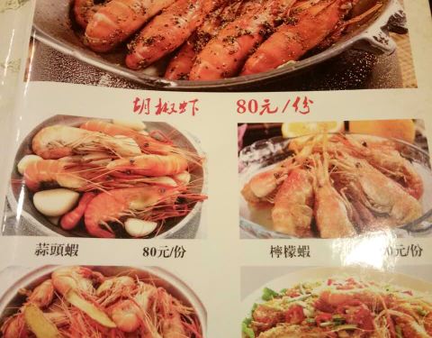 朋友周末还要在北新泾加班 为了聚餐方便在仙霞路上找餐厅,发现有这样一家台湾馆子,便来尝尝思念已久的胡椒虾哦,最后还加了份盐焗大头虾,可以喝到台湾啤酒以及黑松沙士