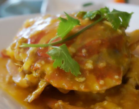 ...足的,黄油花蟹是特色菜但是感觉新鲜度不够~黑椒牛骨很特别~糍饭糕也是特色~价格不便宜还有服务费