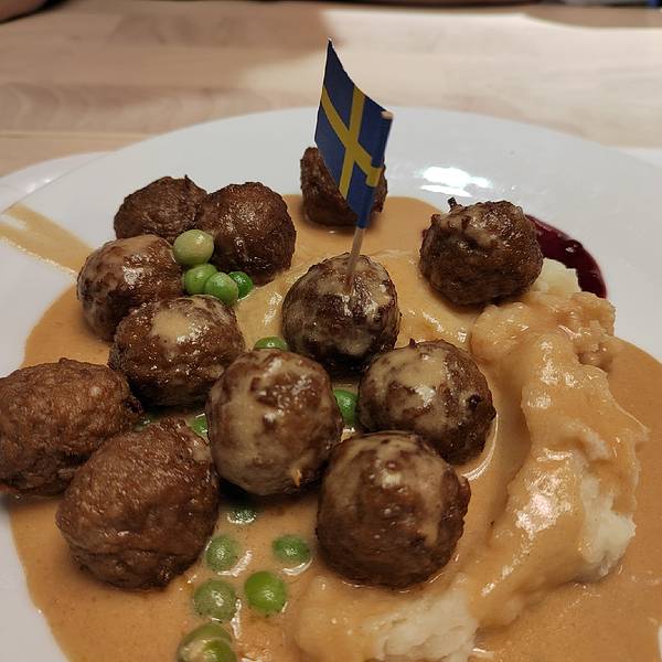 - 最爱的瑞典小肉圆配土豆泥和蔓越莓酱每次都吃不厌,还有每次必点的提拉米苏,几十块钱一个人完全可以...